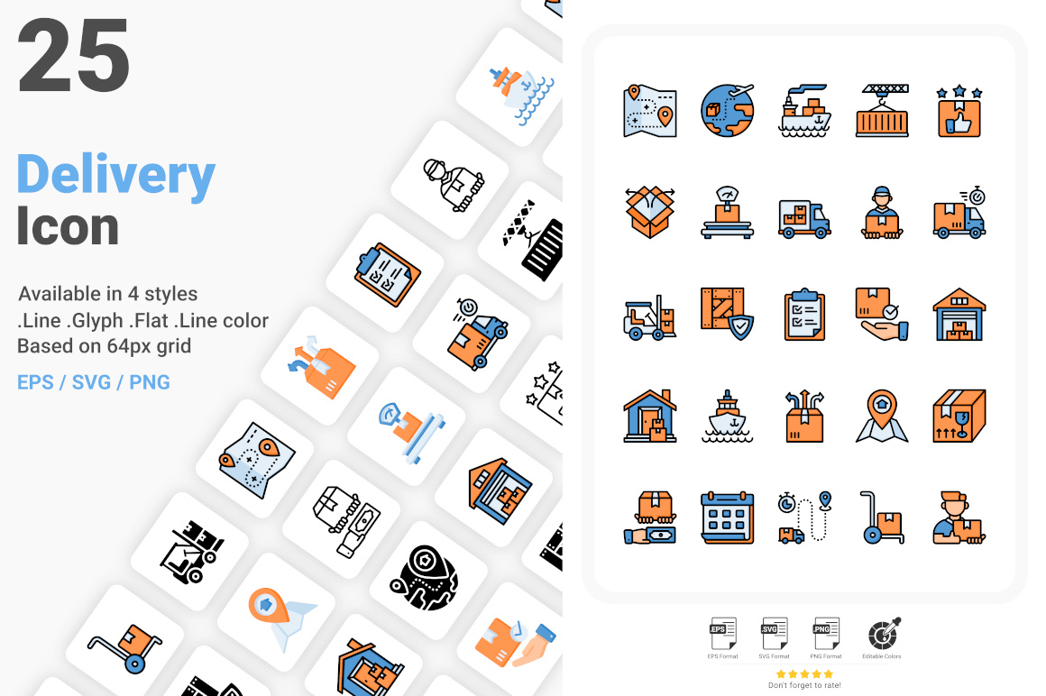 | Delivery And Logistic Icon Pack Posted: 31 May 2021 07:27 AM PDT Introducing Delivery And Logistic Icon Pack This icons set is suitable for your design needs and all project, especially for logistic, ecommerce and global business purpose and other This icon set inlcudes 4 style ready to use : – Flat color – Glyph (solid) – Line (Outline) – Lineal color (Outline color) All of the icons are correctly placed in separated folders. In this set you will get fully editable vector such as: EPS, PDF, SVG and separately PNG files with high quality. Features : – Easy to Edit – 100% Vector – Ready to use – Pixels perfect – Editable size and color – Compatible with AI (Adobe Illustrator) This pack includes : – .EPS file – .SVG file for each icon – .PNG file for each icon ("BONUS") – .PNG file with all style based on 64×64 pixels size ("BONUS") Hope you like it. Thank you! This posting includes an audio/video/photo media file: Download Now |