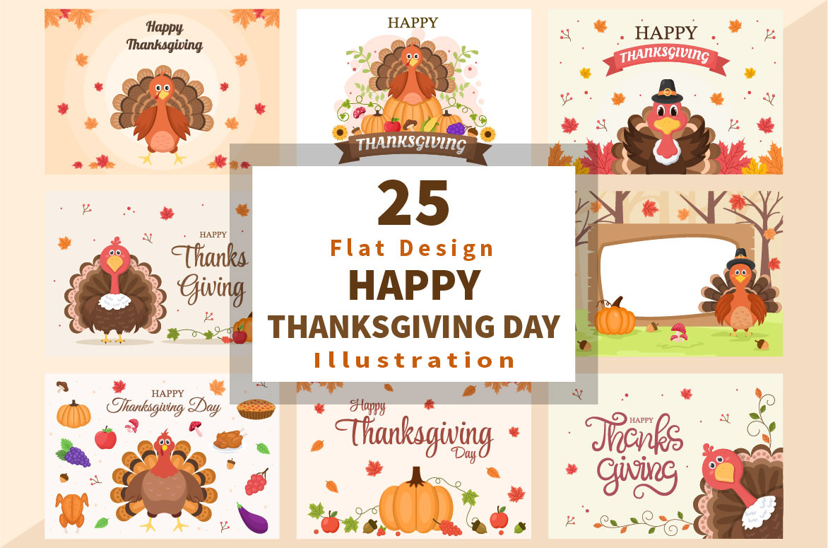 - 25 Happy Thanksgiving with Cartoon Turkey Vector Illustration